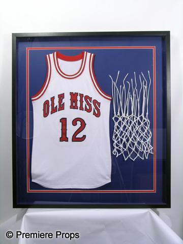 The Blind Side - Straight from the set of the Blind Side, this is Sean Tuohy's (Tim McGraw) white with red trim ‘Ole Miss 12’ basketball jersey and net display. This beautiful display is mounted on glass with a covered black frame. (approx 44 ¼” x 39 ¾” x 2 ¼”) A great addition to your movie memorabilia collection! This item is over-sized and requires additional shipping. Please email for a shipping quote before bidding. (TBS3005)
