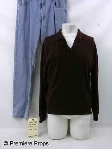 Sean Tuohy (Tim McGraw) screen worn white short sleeve crew neck "Banana Republic" t-shirt, (no size, velcro on back at neck) maroon knit three buttons at collar long sleeve "Joesph & Lyman" polo, (size M) and light blue denim five pocket "Levis" jeans. (Size 34x32) Includes wardrobe tag!