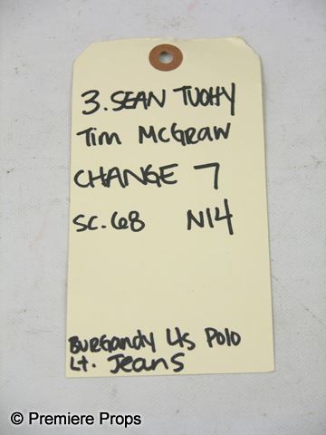Sean Tuohy (Tim McGraw) screen worn white short sleeve crew neck "Banana Republic" t-shirt, (no size, velcro on back at neck) maroon knit three buttons at collar long sleeve "Joesph & Lyman" polo, (size M) and light blue denim five pocket "Levis" jeans. (Size 34x32) Includes wardrobe tag!