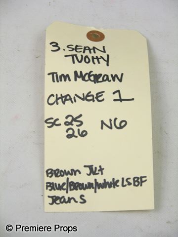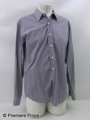 Sean Tuohy (Tim McGraw) blue white and red checkered l/s button down with collar "Coop" shirt (size L), brown leather three button with collar "Facconable" blazer (size M) (Screen worn/includes wardrobe tag)