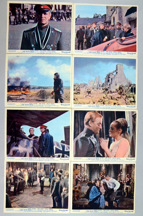 The Blue Max (1966) 8 Front of House lobby cards for the film starring James Mason, 20th C Fox, A- (8) 8 x 10in. (20 x 25cm)