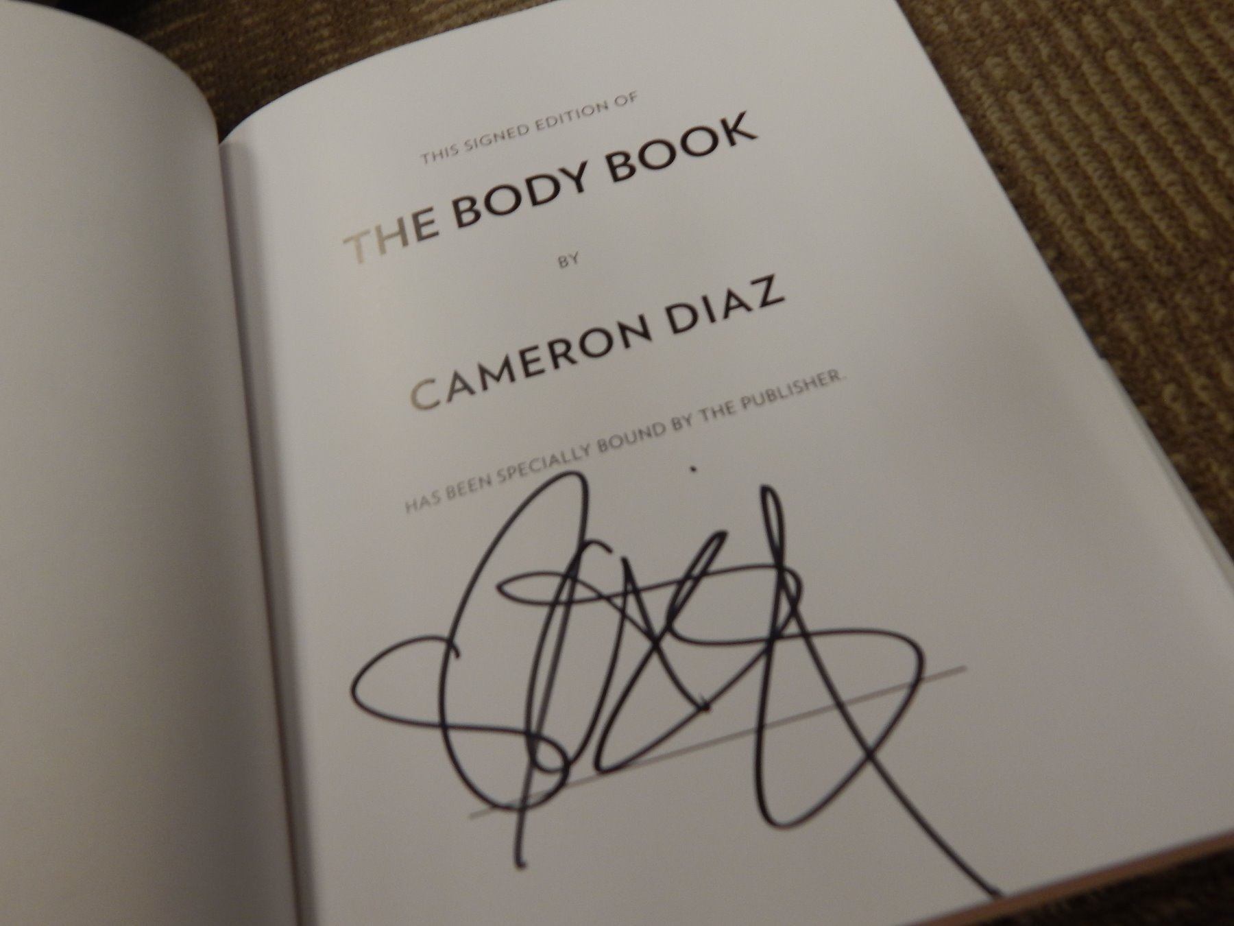 Signed copy of The Body Book written and signed by Cameron Diaz. All items come with a certificate of authenticity good for the life of the piece.