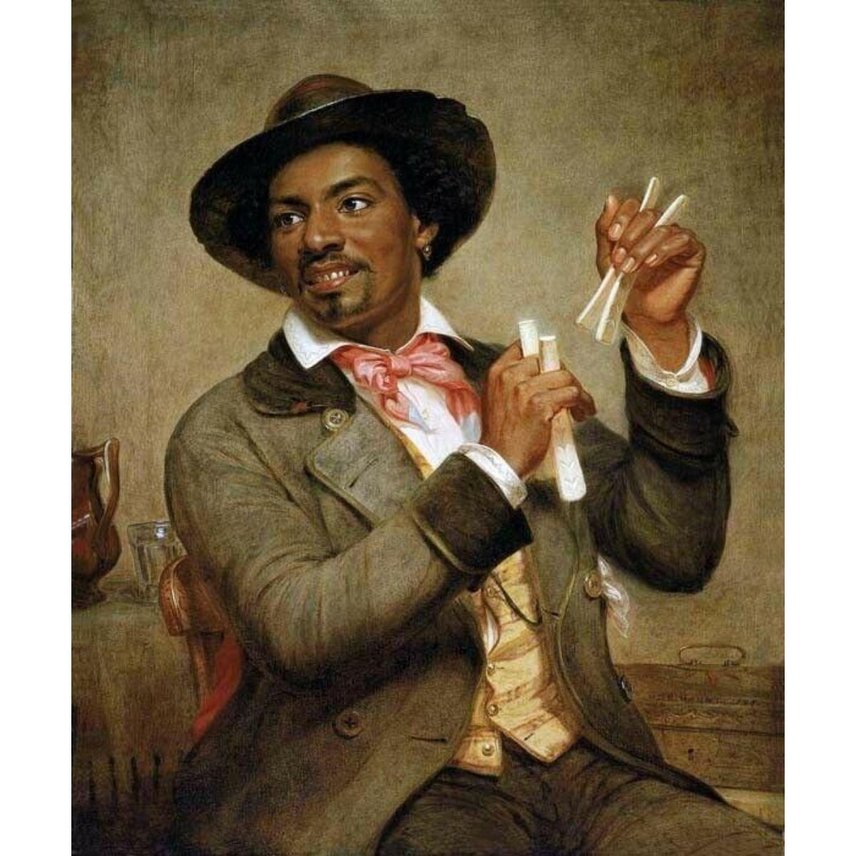 The Bone Player color lithograph print, created after the original  1856 painting by William Sidney. 11" X 14". Â
