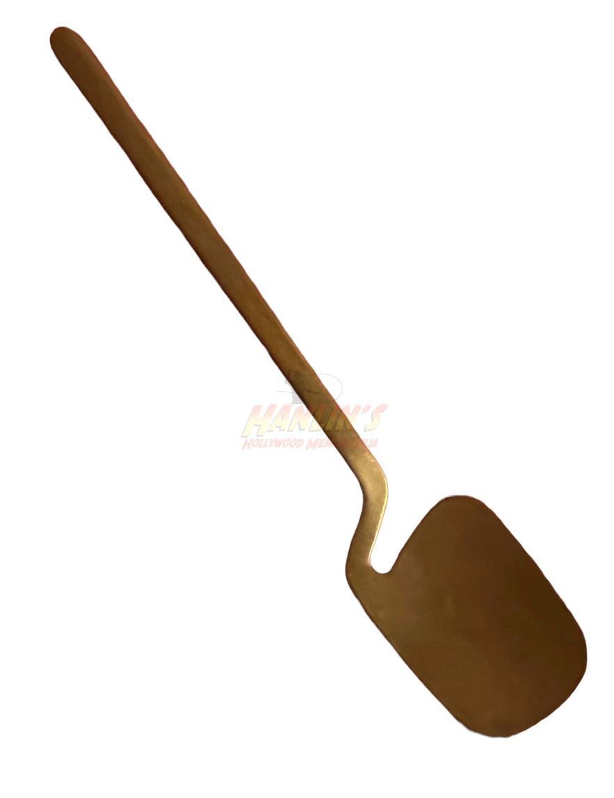 Original prop metal spoon used in the Jon Favreau created science fiction television series 'The Book of Boba Fett' (2021-), which follows bounty hunter Boba Fett as he establishes himself as the new crime lord of Jabba the Hutt's former territory.