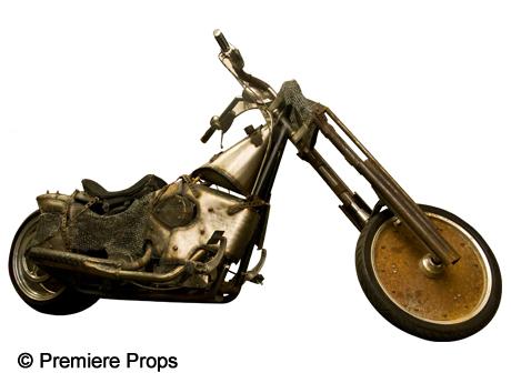 The Book of Eli - This is the Armored Motorcycle from The Book of Eli! Features armored covered gas tank, leather black seat with leather straps to hold metal armor, exhaust pipe covered with armor gear shifts at the petals, electric start on the handles, 'Big Dog' odometer, digital turn signals, metal armor on the front of handle bars, wide back tire, armored front wheel, and kickstand, motorcycle. This motorcycle drives great and was used in numerous scenes throughout the film.  This is handcrafted metal workings built out of recycled metals over a "Big Dog" motorcycle.  This is one of the most unique motorcycles built specifically for The Book Of Eli! (BOE3005) Buyer is responsible for removal of this motorcycle from Los Angeles, CA. Kansas State Title: VIN#5J11RBF165W000196.