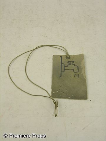 Bartender (Arron Shiver) screen used thin cardboard with faucet graphic and string neck strap water ration card.