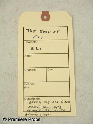 The Book of Eli - Direct from the set of the Hughes Brother's new hit film, The Book of Eli, this is Eli's (Denzel Washington) screen used green knit with leather palms fingerless gloves. Includes wardrobe tag! (BOE2046)