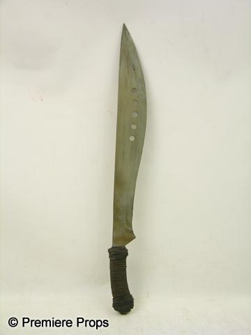 The Book of Eli - Direct from the set of the adventure thriller, The Book of Eli, this is Eli's (Denzel Washington) silver hero rubber knife with brown leather wrapped handle sword. This is his key knife with 5 holes that he uses throughout the film in numerous scenes! This knife measures approximately 26" long (BOE2023)