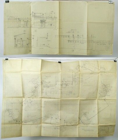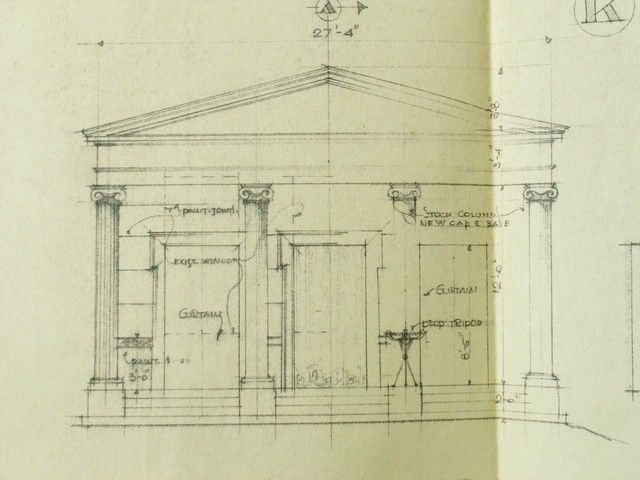 From the Hollywood musical that boasts Titus Maccius, Plautus and Shakespeare as the original writers, these are two large elevation drawings of the exterior town square of ancient Ephesus in Asia Minor, for "The Boys from Syracuse" (1940). (One drawing approx. 19" x 40" and the other approx. 38" x 57").