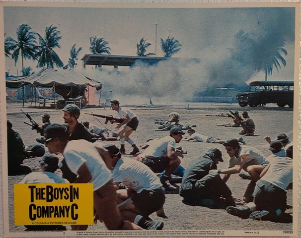 The Boys in Company C (Columbia Pictures, 1978) lobby card. War. Starring Stan Shaw, Andrew Stevens, James Canning, Michael Lembeck, Craig Wasson, Noble Willingham, R. Lee Ermey, Scott Hylands, James Whitmore Jr., Drew Michaels, Santos Morales, Karen Hilger, Claude Wilson, Peggy O'Neal, Chuck Doherty, Israel Cisco Oliver. Directed by Sidney J. Furie. Very minor edge wear, very minor creasing. Excellent. (11"x14").