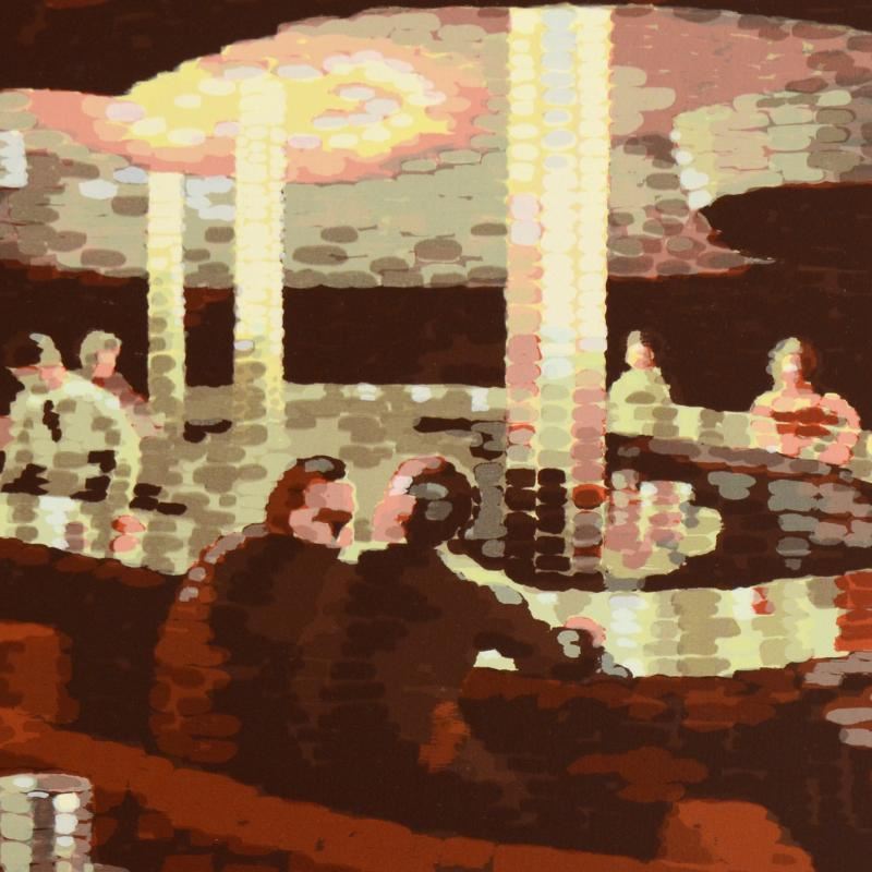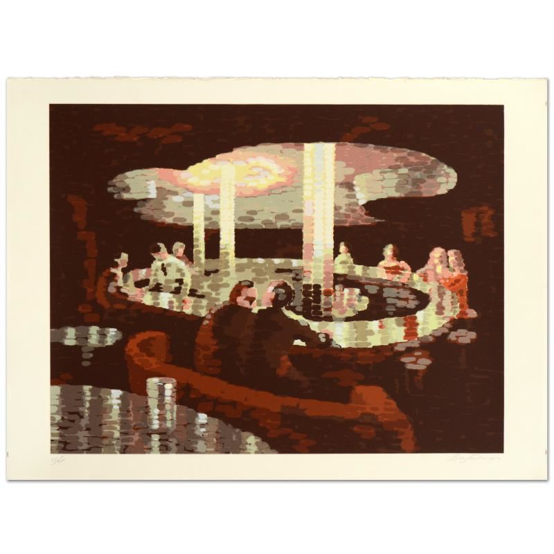 "The Brass Rail" is a limited edition lithograph on paper by Lucio Savoia, numbered and hand signed by the artist! Measures approx. 29.5" x 22" (with border); 24.5" x 19" (image).