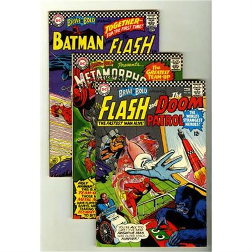 <B>The Brave and the Bold #65-71 Group (DC, 1966-67).</B></I> Includes #65 (Flash and Doom Patrol, VF-), 66 (Metamorpho and the Metal Men, FN), 67 (Batman and the Flash, Carmine Infantino art, Batman team-ups begin, VF-), 68 (Joker/Riddler/Penguin cover, VG), 69 (Green Lantern, VG+), 70 (Hawkman, VF), and 71 (Green Arrow, FN+). Approximate Overstreet value for group = $200.<BR><BR><b>Shipping:</b> Comics - Unslabbed (<a target="_blank" href="http://www.heritageauctions.com/common/shipping.php">view shipping information</a>)