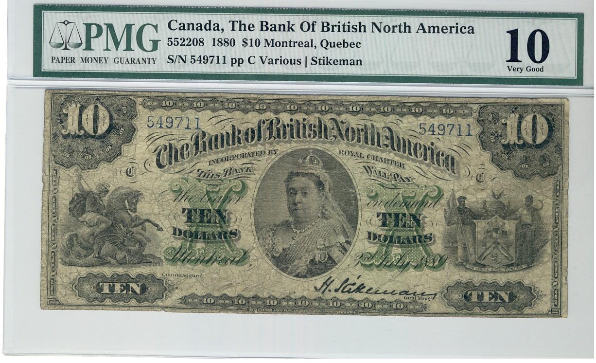The British Bank of North America, 1889 $10 #549711, CH-55-22-08 PMG VG10.