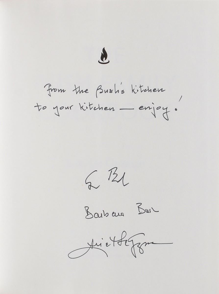 Three items: a copy of Decision Points, hardcover with dust jacket, signed on the half-title page in black felt tip by George W. Bush; a first edition of The Bush Family Cookbook, hardcover with dust jacket, signed on an opening page in black felt tip by George and Barbara Bush, and chef Ariel De Guzman, with Jeb Bush adding an inscription and signature to a prefatory page; and a bookplate for A World Transformed, 3.75 x 5.5, signed in blue ballpoint by George Bush and former National Security Advisor Brent Scowcroft. In overall very fine condition.