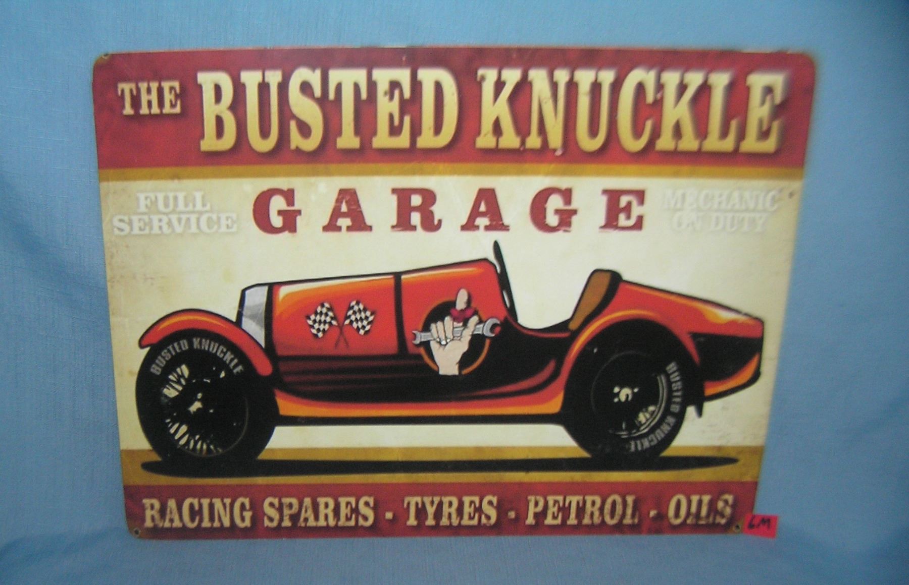 The Busted Knuckle Garage 12 by 16 inches retro style advertising sign printed on PVC hard board these signs are auctioned for there decorative and display purposes est. value $45.00-$60.00