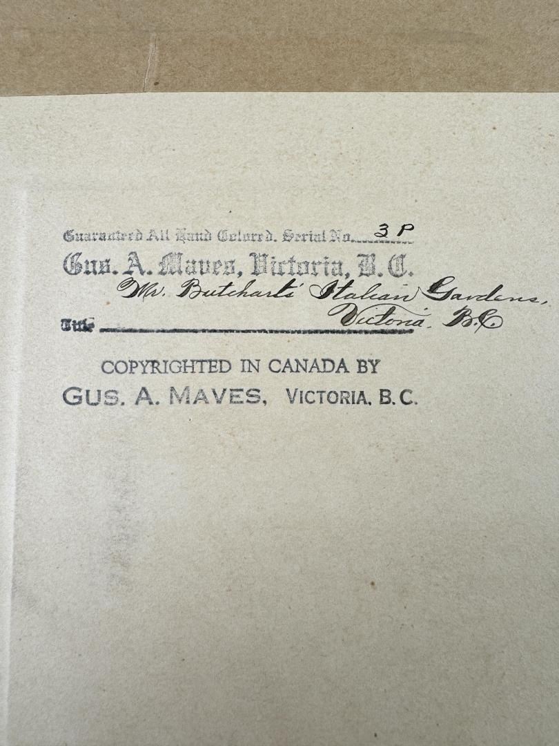 Gus. A. Maves Photographer. Victoria British Columbia. 10 1/2" by 14" with matting.