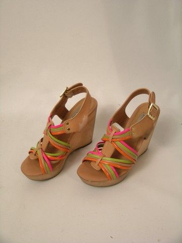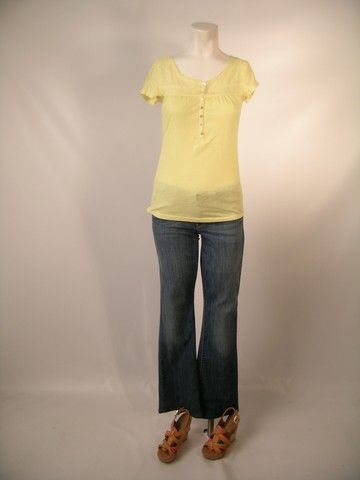 The Call - Casey Welson (Abigail Breslin) screen worn, hero, yellow with lace print and buttons at the bust 'H&M' cap sleeve top, (size XS) light blue denim 'Gap' jeans, (size 26) and slightly worn, beige with neon lacing 'Steve Madden' wedge heels.