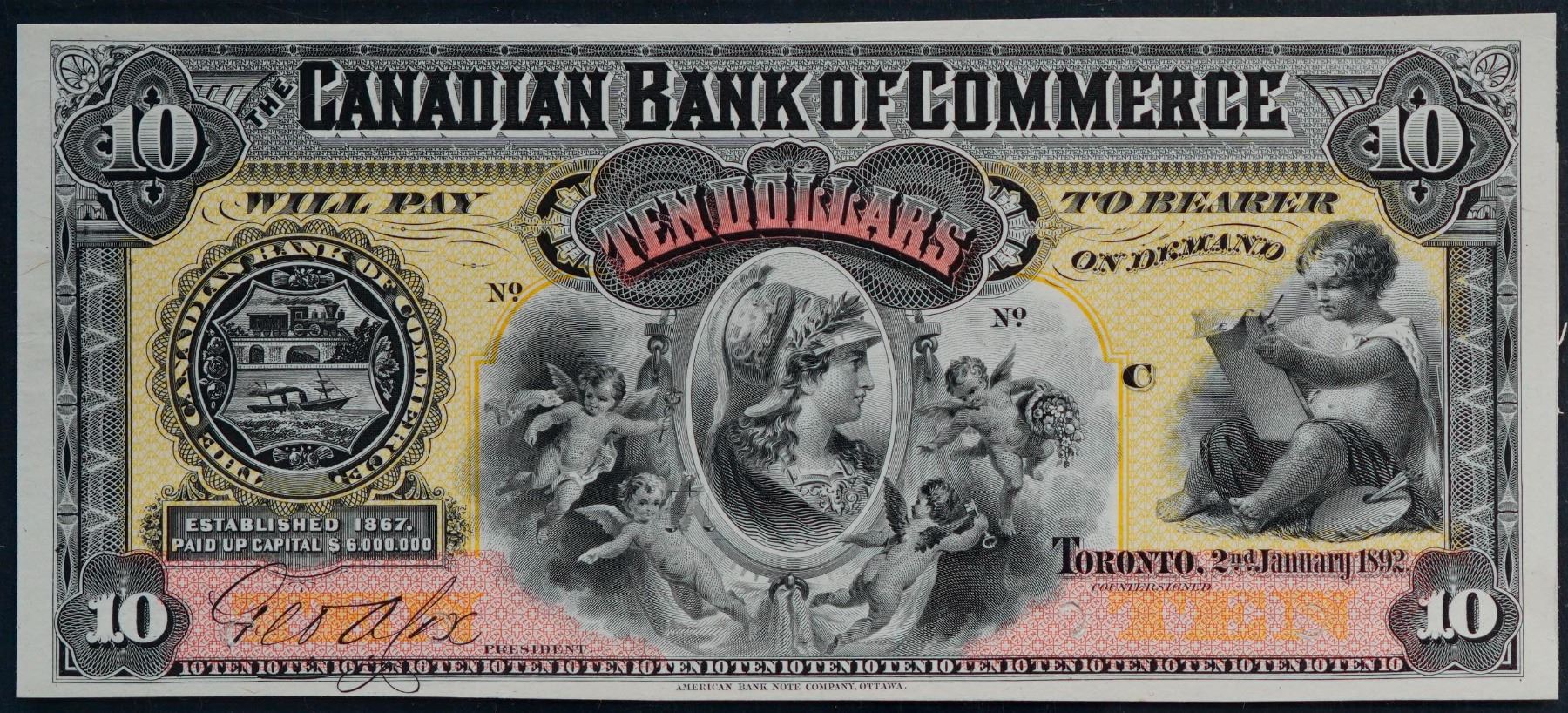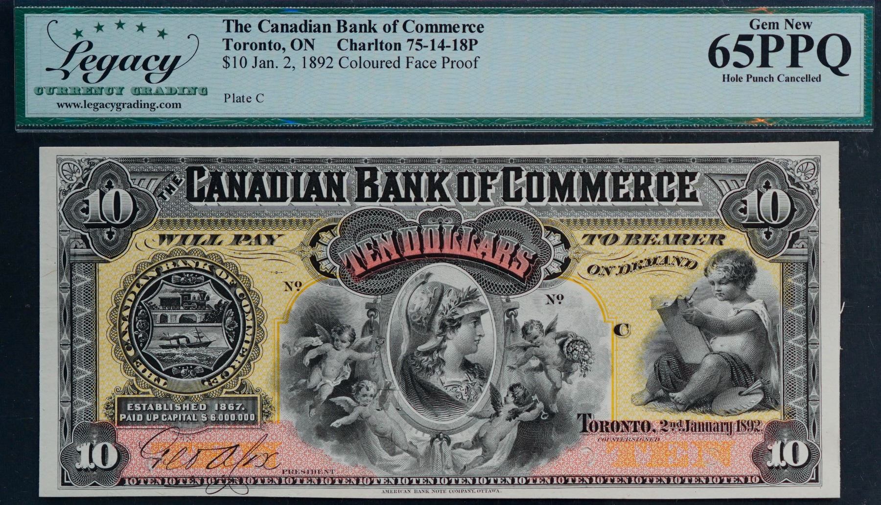 The Canadian Bank of Commerce; 1892 $10 CH-75-14-18P (Colourd) Face Proof LCG Gem Uncirculated-65PPQ.