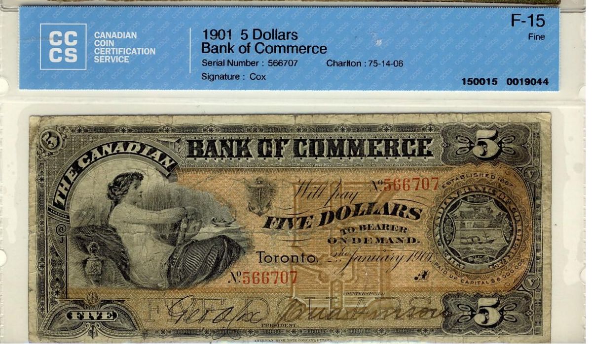 The Canadian Bank of Commerce 1901 $5 #566707, CH-75-14-06 CCCS F15.