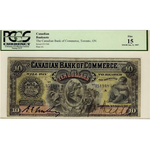 The Canadian Bank of Commerce 1907 $5 #351948 CH-75-14-24 PMG F15. A super note with great colours.