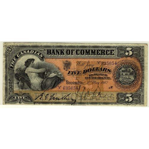 The Canadian Bank of Commerce 1912 $5 #635654 CH-75-14-12 F-VF