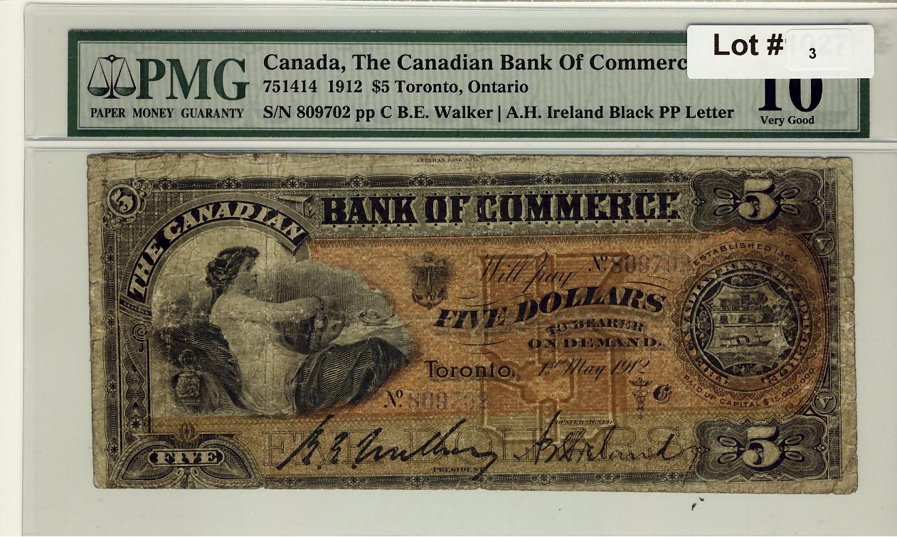 The Canadian Bank of Commerce, 1912 $5 #809702, CH-75-14-14 PMG VG10.