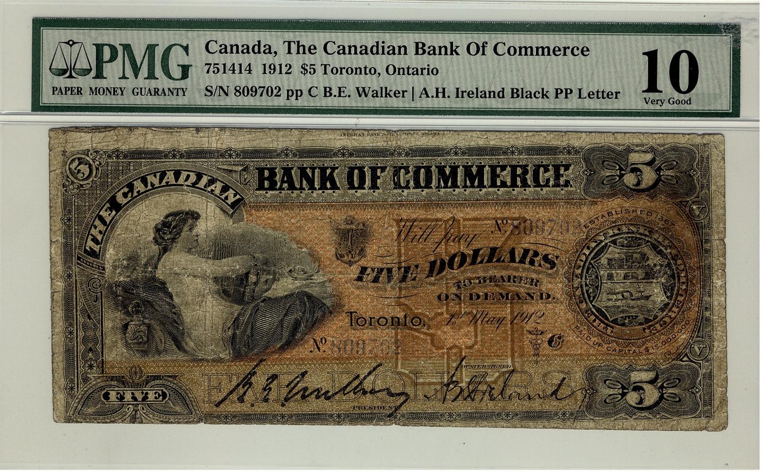 The Canadian Bank of Commerce, 1912 $5 #809702, CH-75-14-14 PMG VG10.