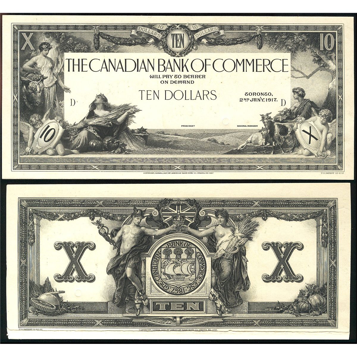 The Canadian Bank of Commerce 1917 $10 CH-75-16-02-06P Face & Back Proofs. Black & White issues with Certificate of Authenticity.
