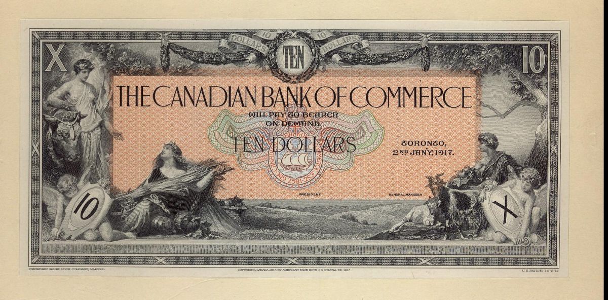 The Canadian Bank of Commerce 1917 $10 CH-75-16-02-06P Front Proof issue, Major Tint.