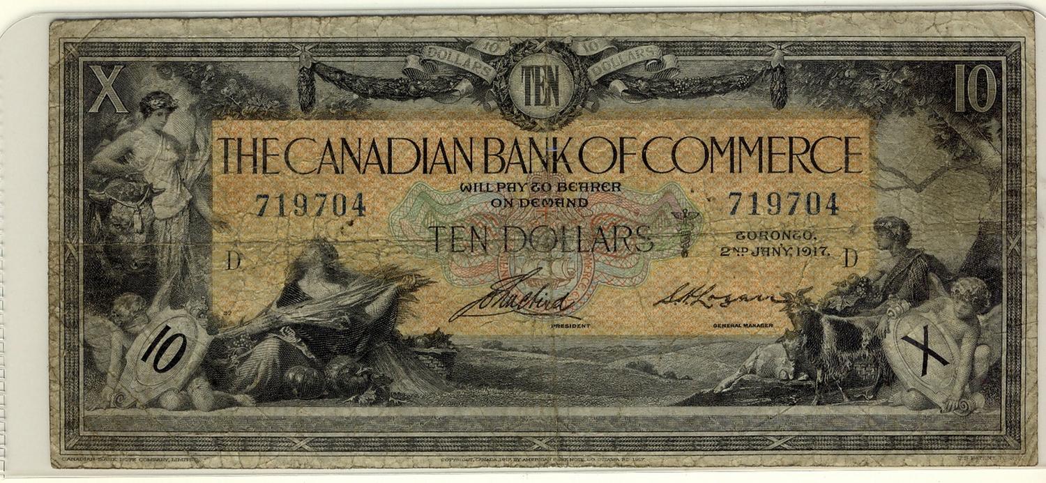 The Canadian Bank of Commerce, 1917 $10 CH-75-16-04-12b #719704. A nice VG -F example.