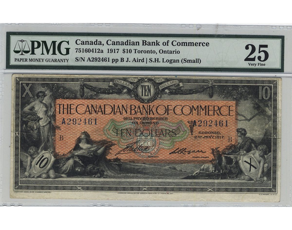 The Canadian Bank of Commerce 1917 $10 CH-75-16-04-12b. #A292461 PMG VF25.