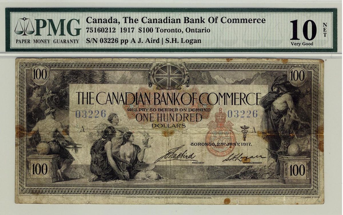 The Canadian Bank of Commerce, 1917 $100 #03226, CH75-16-02-12, PMG VG10. Scarce