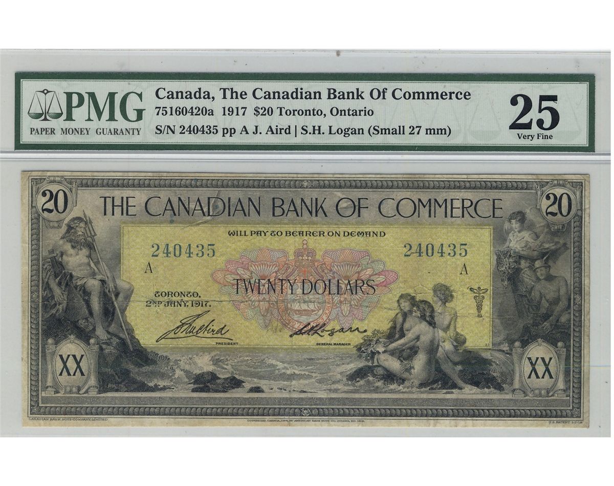 The Canadian Bank of Commerce; 1917 $20 CH- 75-16-04-20a, 240435 PMG VF-25. A bright example.