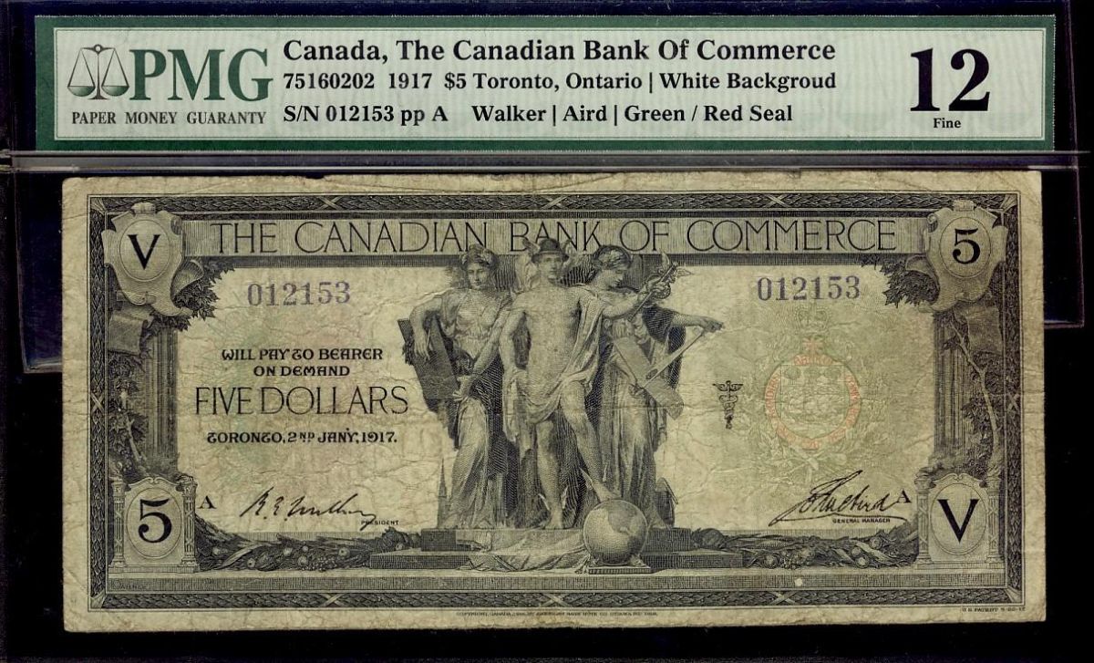 The Canadian Bank of Commerce 1917 $5 #012153 CH-75-16-02-02 PMG F12.