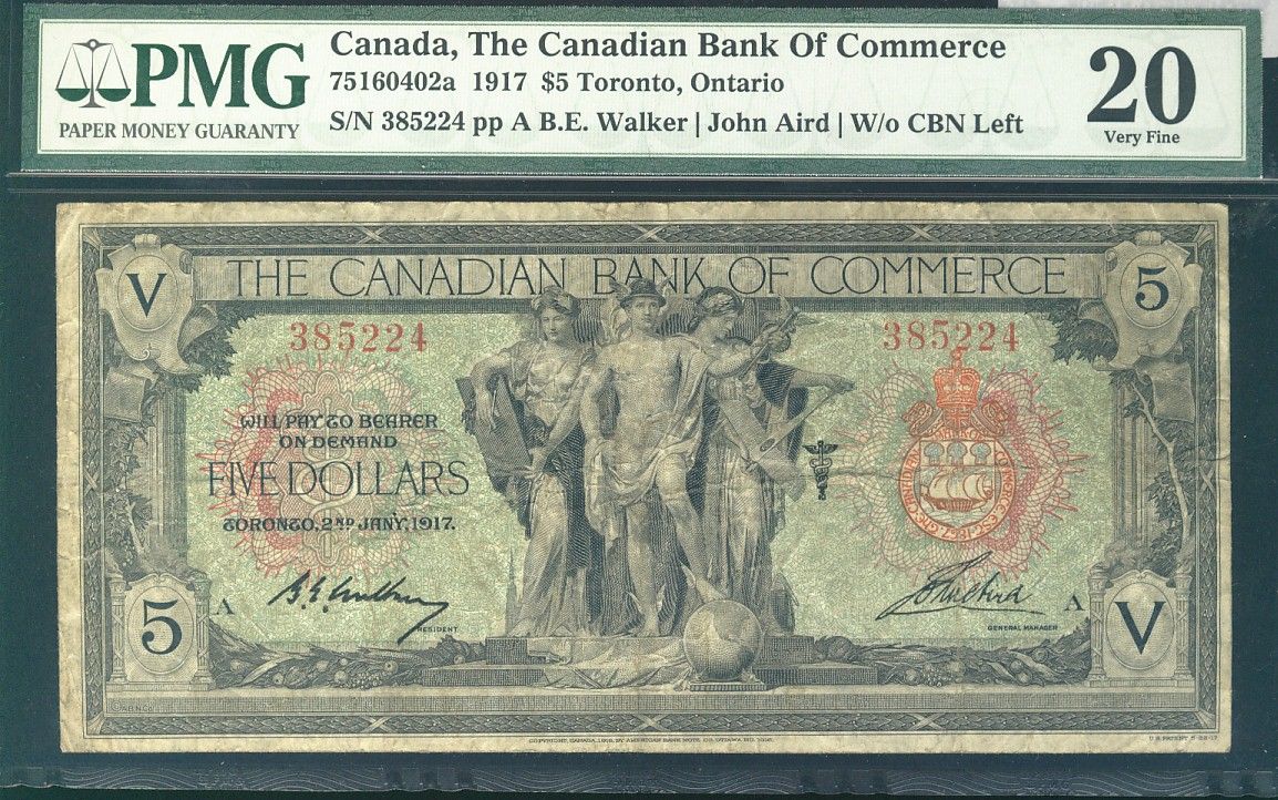 The Canadian Bank of Commerce 1917 $5 #385224 CH-75-16-04-02a PMG VF20.