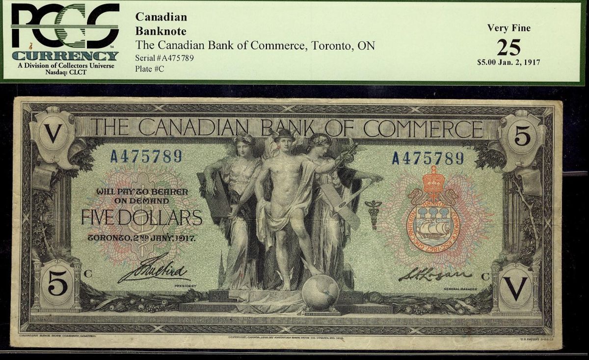 The Canadian Bank of Commerce 1917 $5 #A475789 CH-75-16-04-06a, PMG VF25