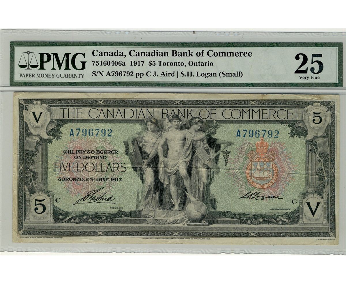 The Canadian Bank of Commerce; 1917 $5 #A796792 CH-75-16-04-06a PMG VF25.