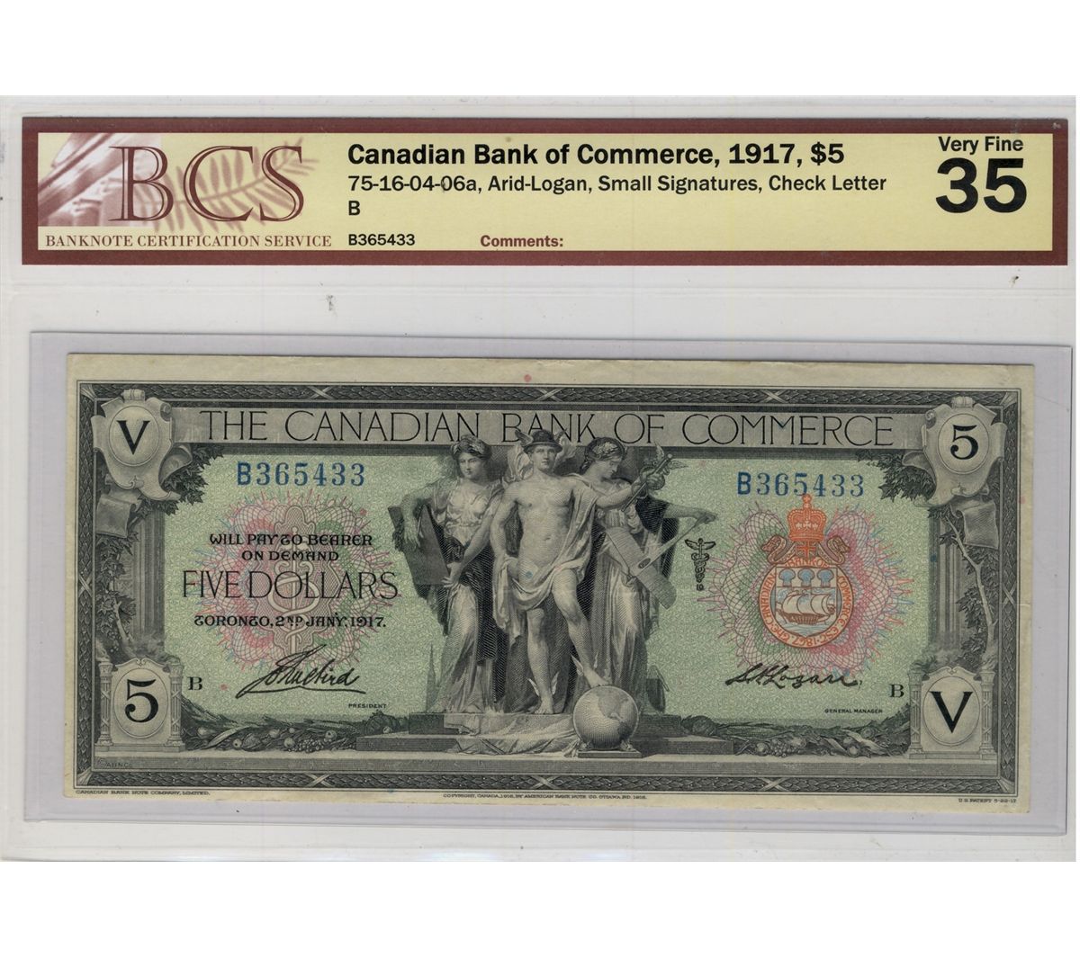 The Canadian Bank of Commerce; 1917 $5 #B365433 CH-75-16-04-06a BCS VF35
