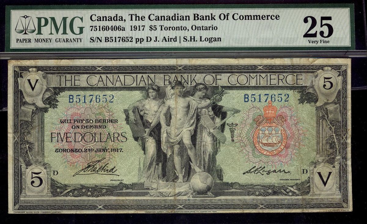The Canadian Bank of Commerce, 1917 $5 #B517652, CH-75-16-04-06a. PMG VF25.