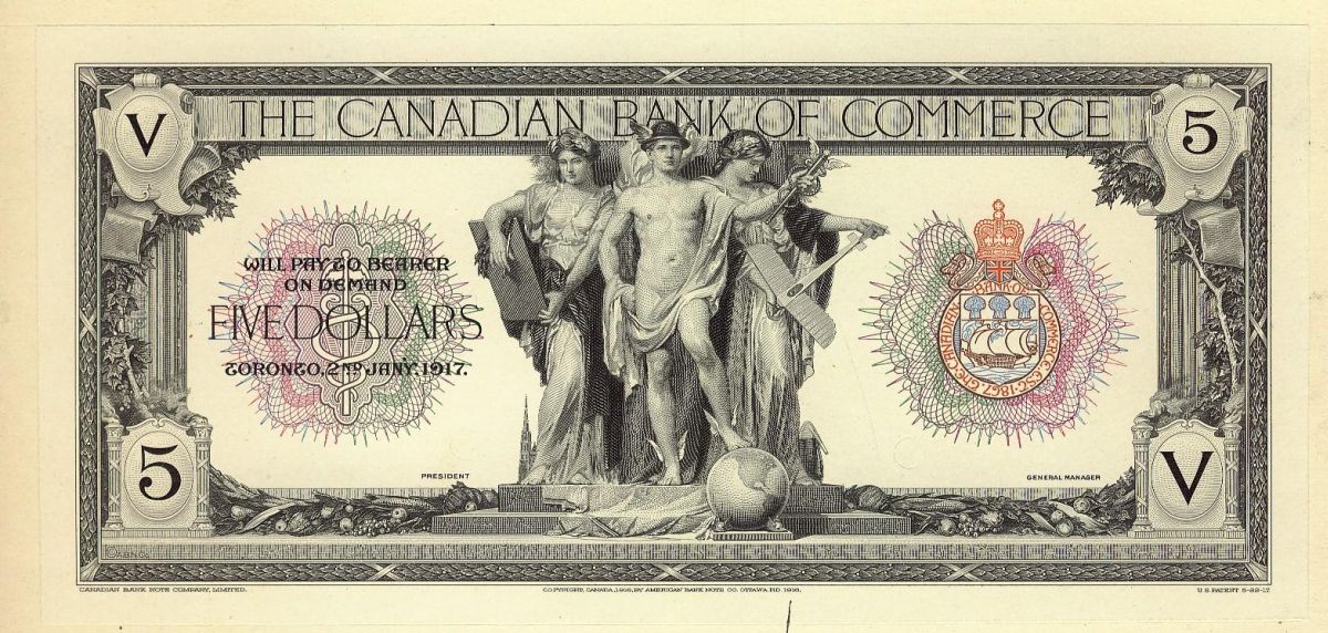 The Canadian Bank of Commerce 1917 $5 CH-75-16-02-04P Front Proof issue.