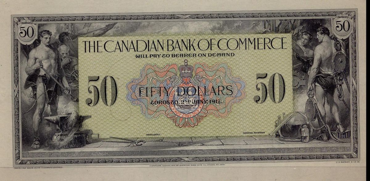 The Canadian Bank of Commerce 1917 $50 CH-75-16-02-10P Front Proof issue, Major