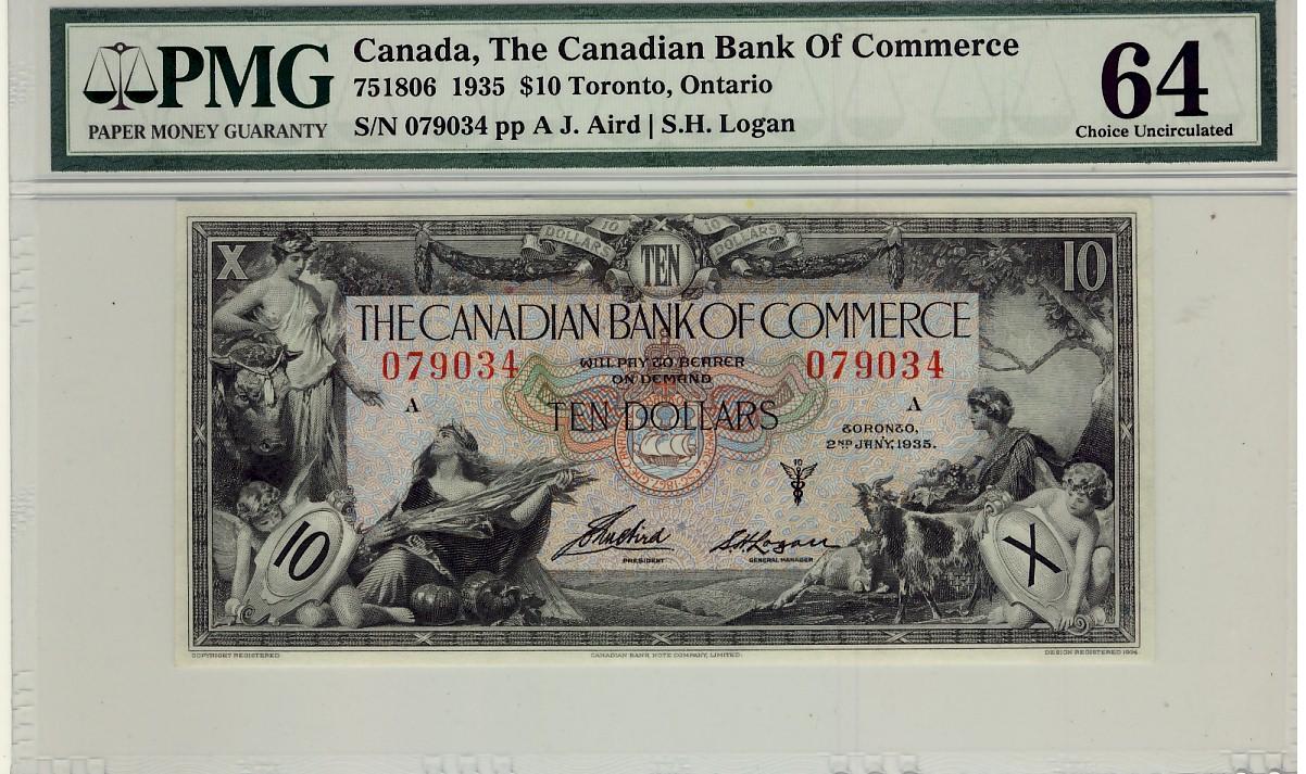 The Canadian Bank of Commerce 1935 $10 079034 CH-75-18-06 PMG UNC64