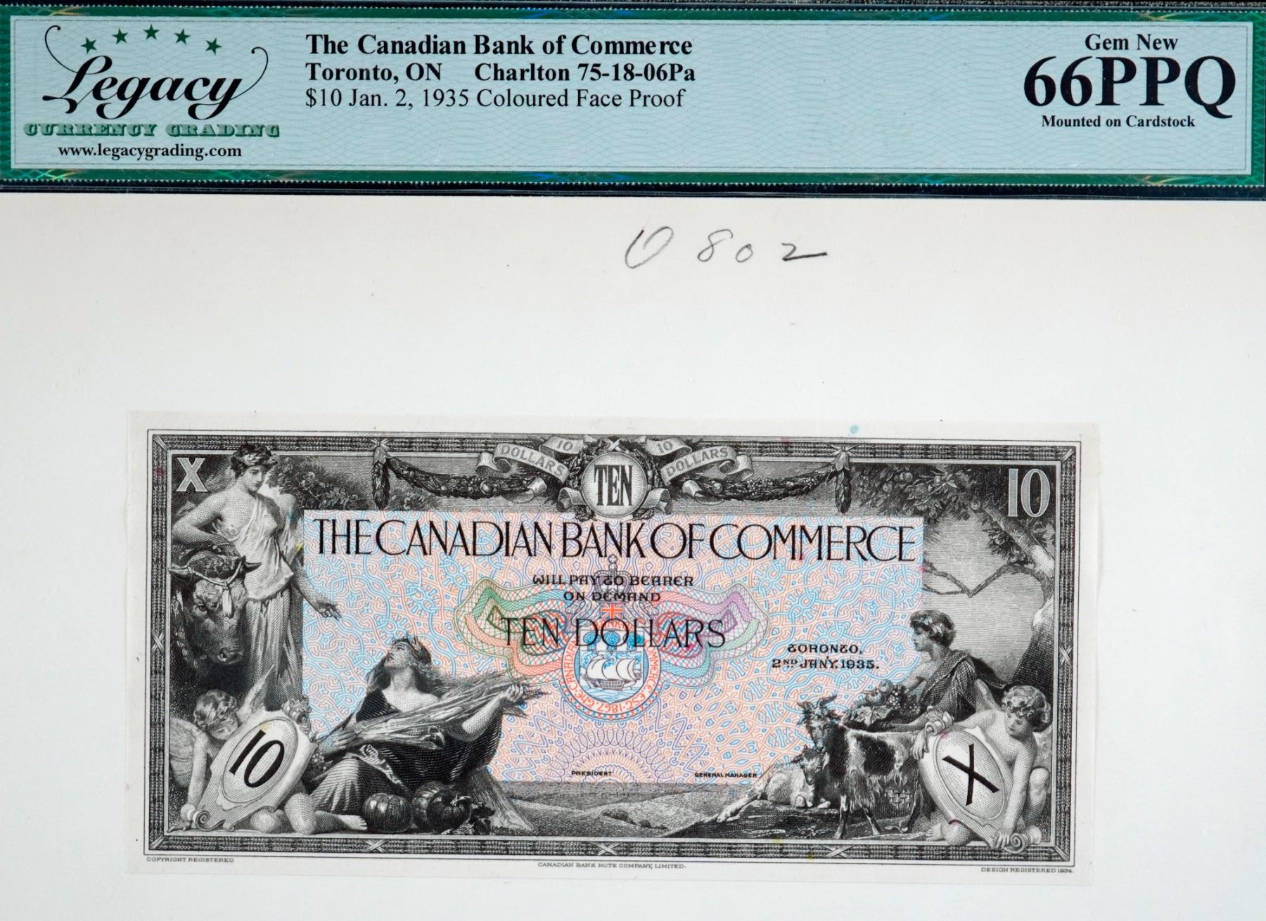 The Canadian Bank of Commerce 1935 $10 CH-75-18-06Pa (Front & Back Proofs) Both Legacy Currency Grading Superb Gem Uncirculated-66PPQ & Superb Gem Uncirculated-67PPQ