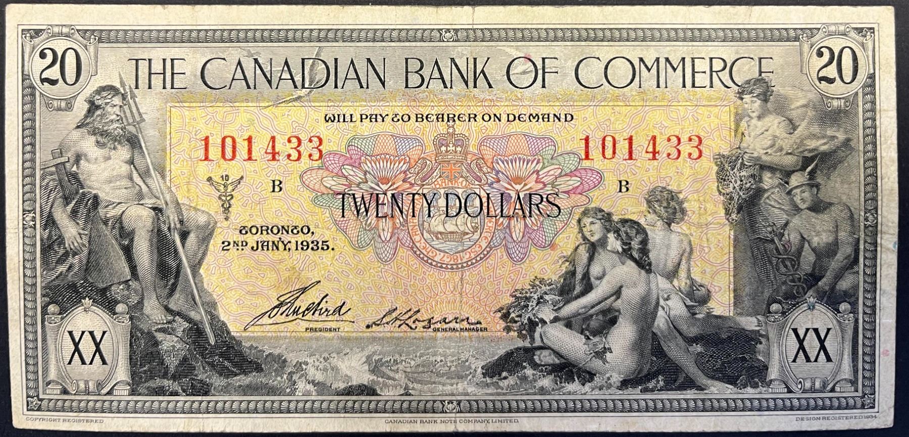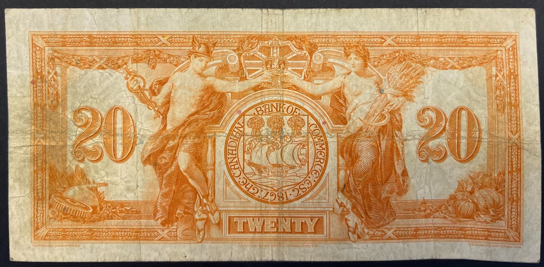 The Canadian Bank of Commerce 1935 $20 about VF