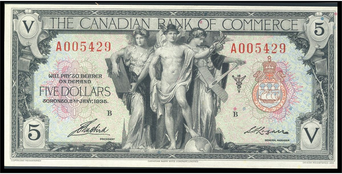 The Canadian Bank of Commerce; 1935 $5 #A005429 CH-75-180-02 PMG Gem UNC65EPQ.