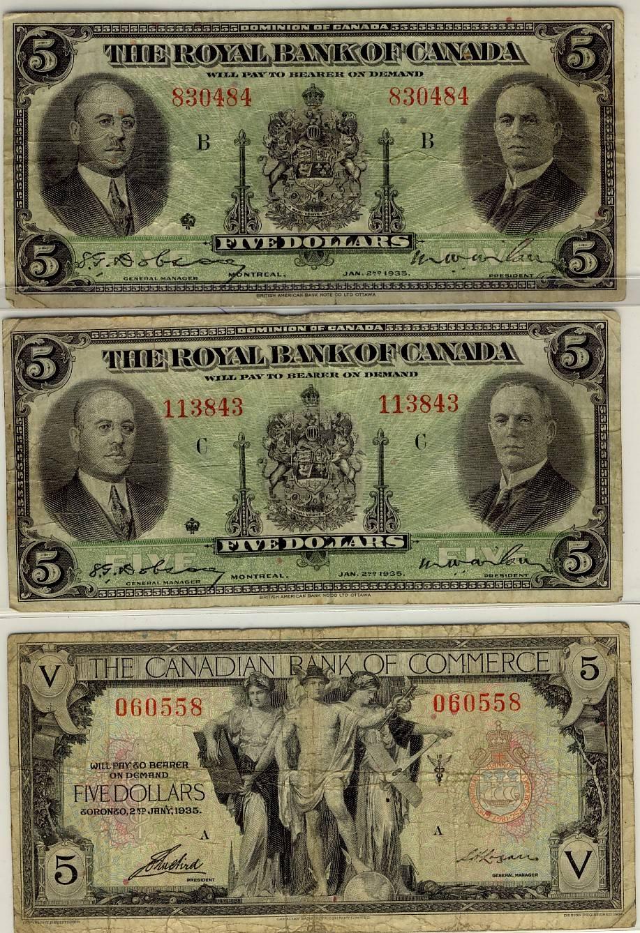 The Canadian Bank of Commerce & The Royal Bank of Canada. Lot of three notes including CH-75-18-02, CH-630-18-02 and CH-630-18-02a. Notes grade F to VF