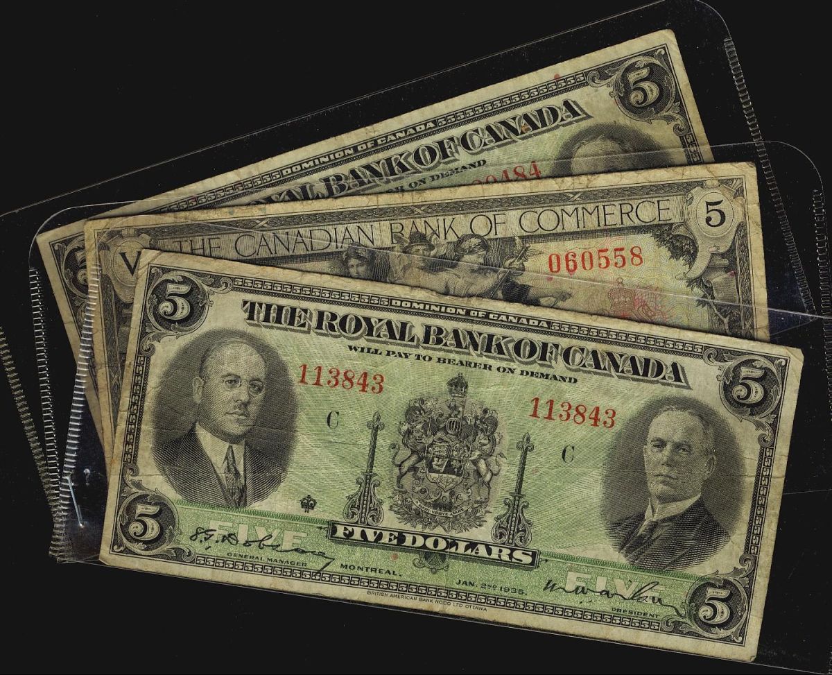 The Canadian Bank of Commerce & The Royal Bank of Canada. Lot of three notes including CH-75-18-02, CH-630-18-02 and CH-630-18-02a. Notes grade F to VF