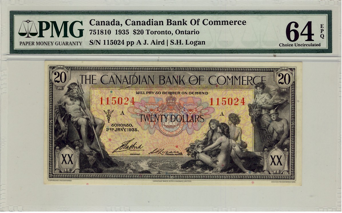 The Canadian Bank of commerce 1935 $20 115024 CH-75-18-10 PMG UNC64EPQ