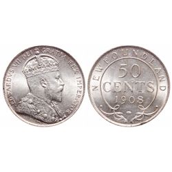 Newfoundland. 50 Cents. 1908. ICCS graded Gem Uncirculated-65. Tied with 1 other finest graded by ICCS.