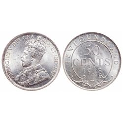 Newfoundland. 50 Cents. 1918C. ICCS graded Gem Uncirculated-65. One of the top 3 coins in the ICCS census, with only 1 coin graded finer in MS-66.